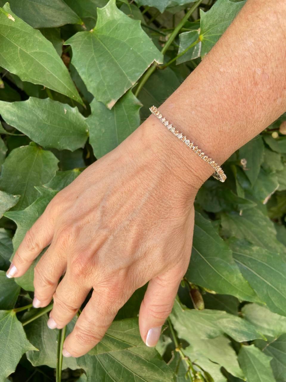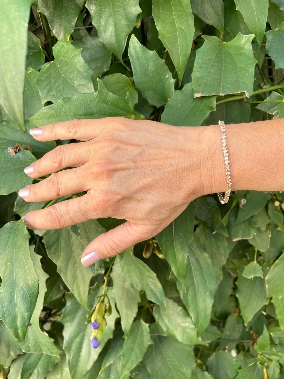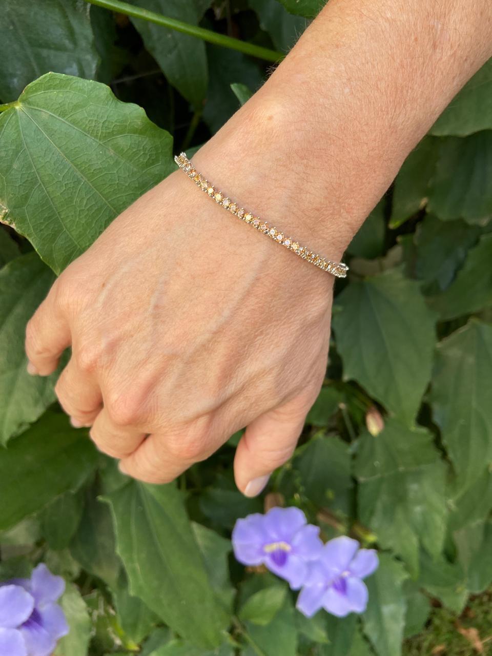 Pulseira riviera com zircônia morganita, em ródio branco. Fecho gaveta.