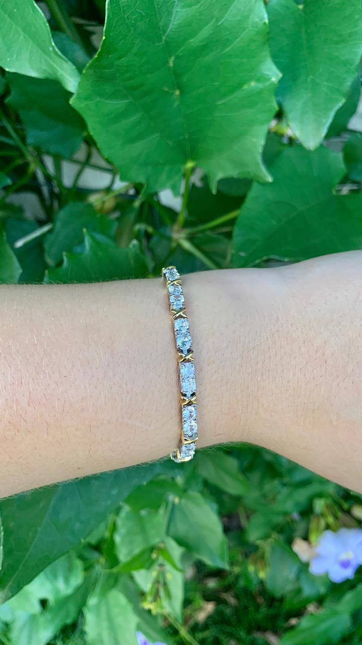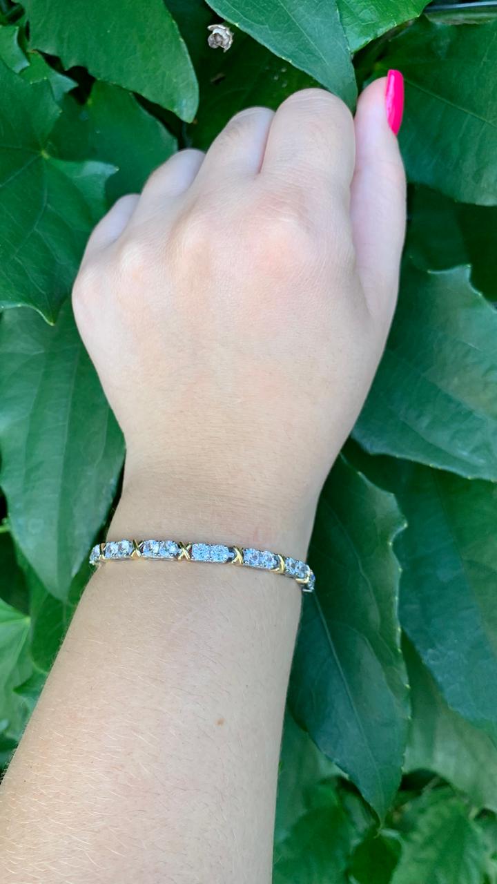 Pulseira riviera em ródio, com detalhe em x banhado a ouro.