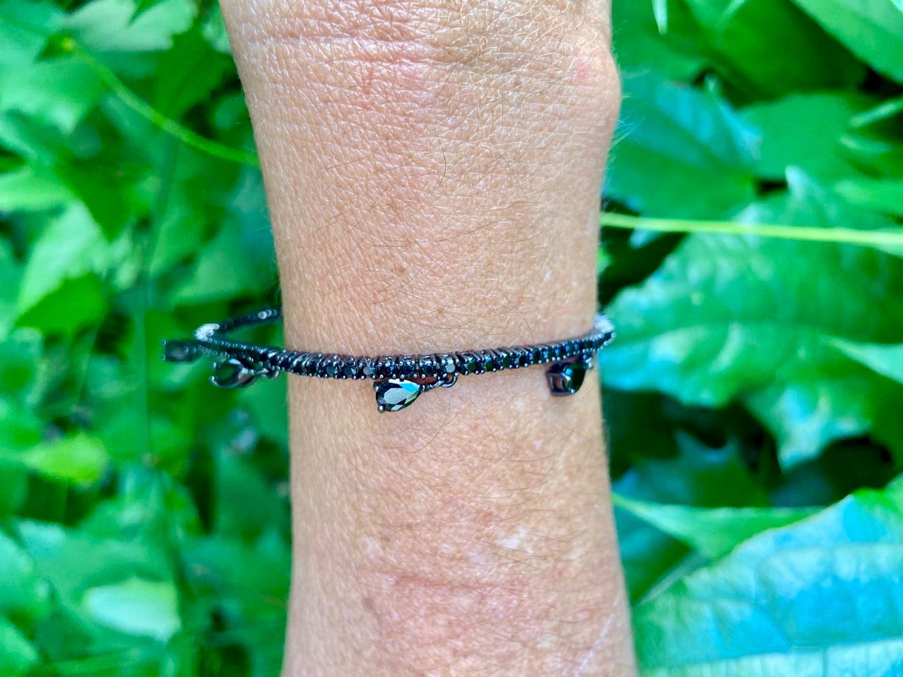 Pulseira de zircônia negra com pingentes de ródio negro.